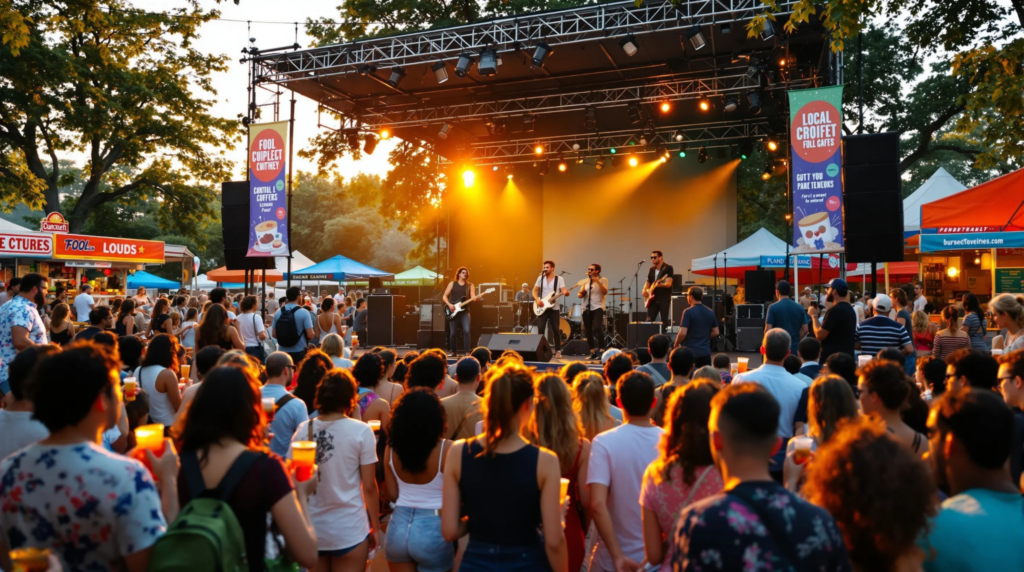 Music Festivals: Think larger gatherings with multiple acts, food stalls, and a buzzing atmosphere. Perfect for a day out.